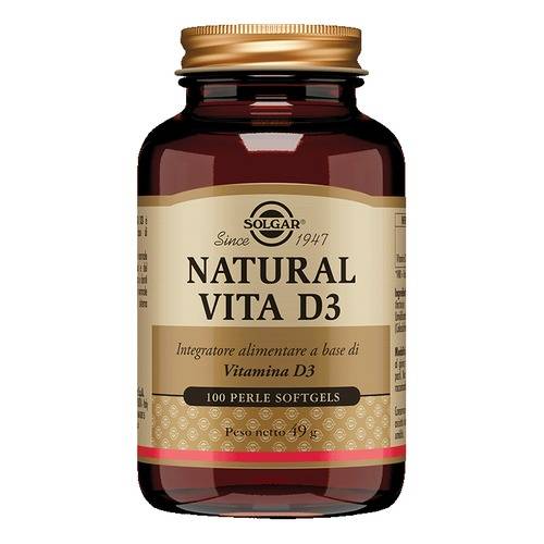 NATURAL VITA D3Descrizione Integratore alimentare a base di vitamina D3. La vitamina D3 contribuisce al normale assorbimento/utilizzo del calcio e del fosforo, al mantenimento di ossa e denti normali e al mantenimento della normale funzione muscolare e del sistema immunitario. Ingredienti Olio di cartamo, gelatina alimentare; agente di rivestimento: glicerolo vegetale; vitamina D3 (colecalciferolo) da olio di fegato di pesce. Caratteristiche nutrizionali Valori medi per 3 perle %VNR* Vitamina D3 (1.200 U.I.) 30 mcg 600 *VNR: Valori Nutritivi di Riferimento Modalità d'uso Deglutire da 1 a 3 perle softgels al gi...
